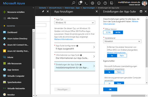 Schritt 1: Auswahl der zu verteilenden Office365 Anwendungen