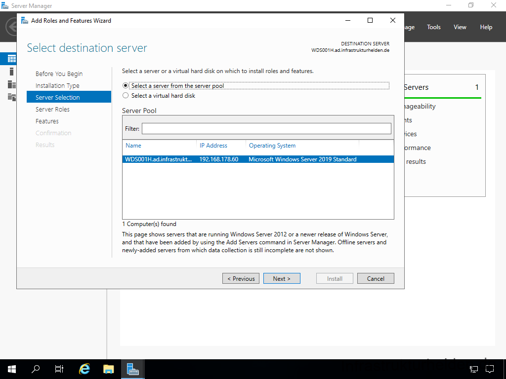 Im Server Manager sehen Sie, wenn die Installation abgeschlossen ist.