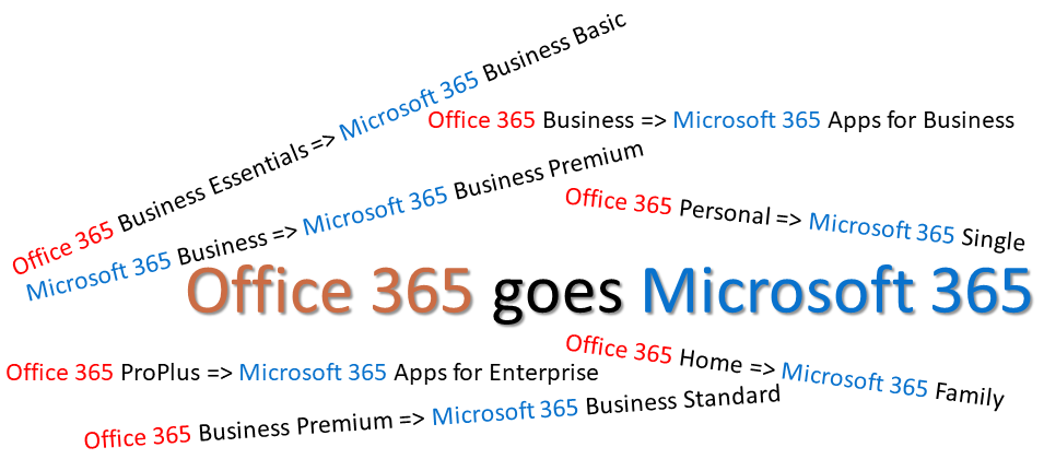 Neue Namen bei Office 365 bzw. Microsoft 365